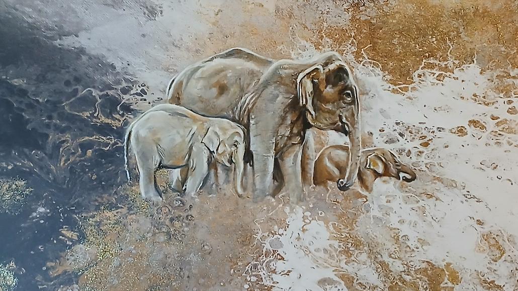 47x23.5 Acrylic painting on recycled vinyl. Feel the motion of the ocean